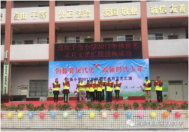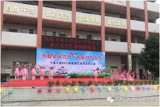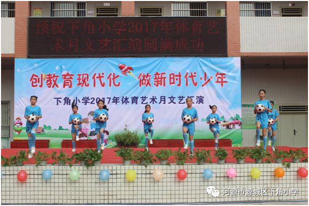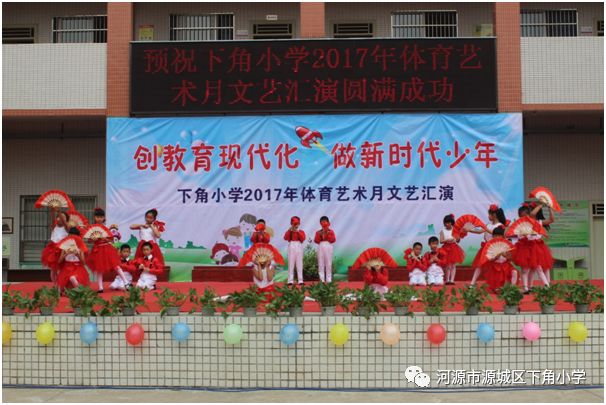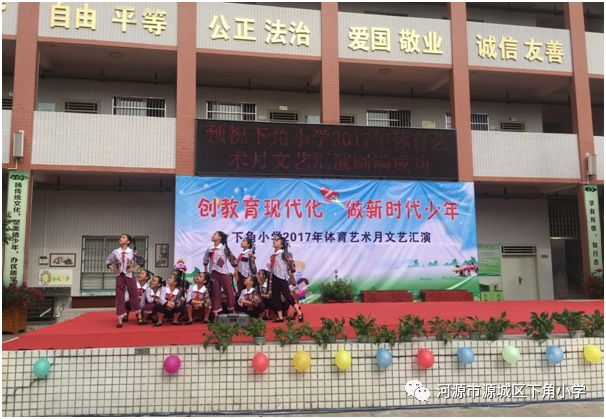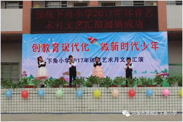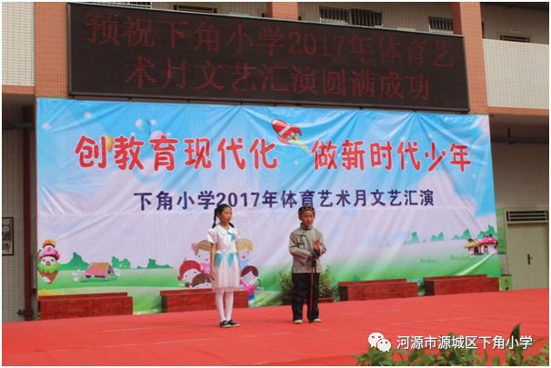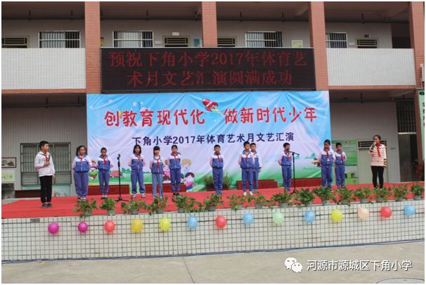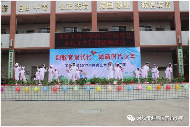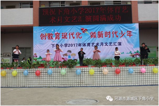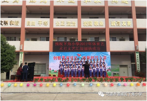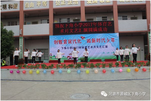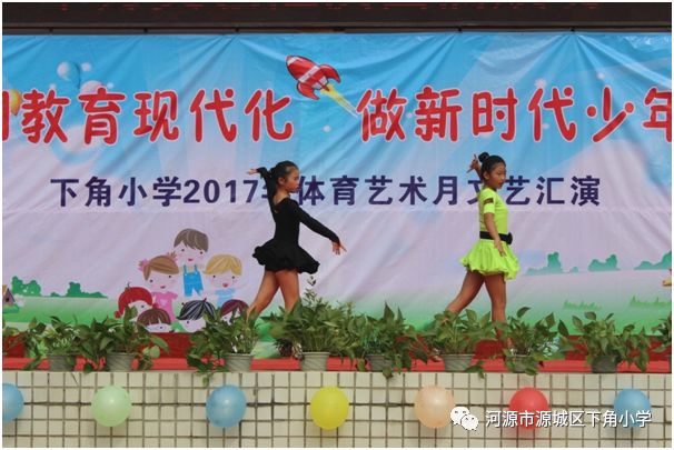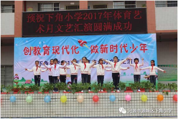 为创建教育现代化,全面推进素质教育,展示学校艺术教育成果,推动学校艺术教育的改革与发展,2018年1月4日,下角小学开展了以“创教育现代化,做新时代少年”为主题的体育艺术月活动,让学生在浓厚的艺术氛围里开启多种感知通道,打开情感的闸门,激发学生对体育、艺术的兴趣与爱好,培养学生健康的审美情趣和良好的艺术修养,促进综合技能的发展。
